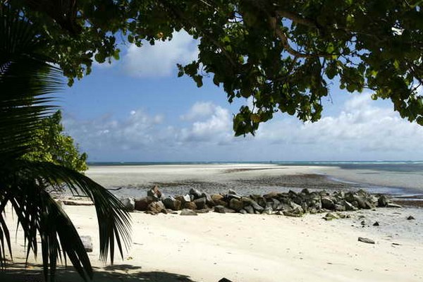 На юго-западном берегу острова Праслин, напротив двух живописных островов.