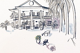 Шесть спален с ванными комнатами, кухней, столовой, гостиной, верандами и террасами.
